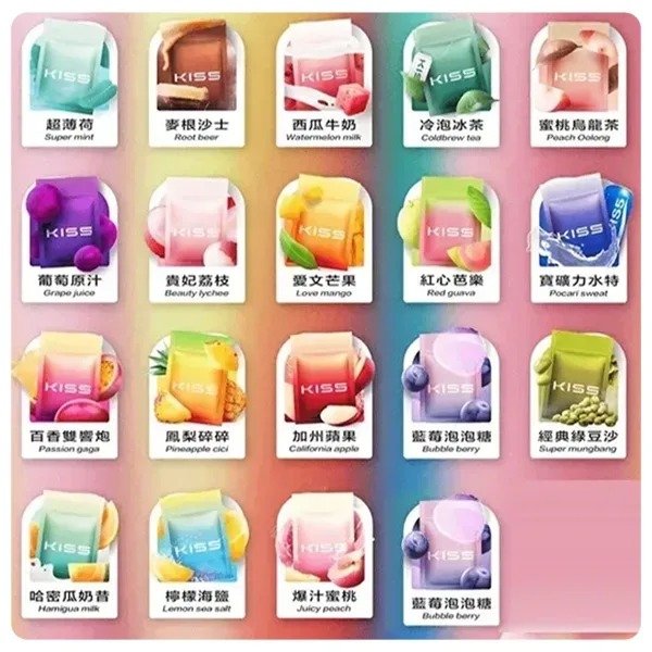 KISS煙彈外觀設計簡約時尚,採用高品質材料,手感舒適且耐用。Kis5菸彈採用了先進的陶瓷霧化芯技術,確保煙霧細膩均勻,口感醇厚。漏油防護技術的應用有效解決了傳統電子煙常見的漏油問題,為用戶提供了更加乾淨、整潔的使用體驗。KISS菸彈還推出了多種口味選擇,如經典菸草、清新水果等,滿足不同用戶的口味需求。KIS5煙彈的煙霧量適中,續航能力強,一顆煙彈可提供約500口的使用量,足夠大多數用戶使用一週以上。使用便捷,只需將煙彈插入電子煙主體,即可輕鬆享受。Kis5電子菸煙彈是一款集時尚外觀、先進技術、豐富口味、舒適體驗和安全保障於一身的優秀產品,是追求高品質電子煙體驗的用戶的理想之選。